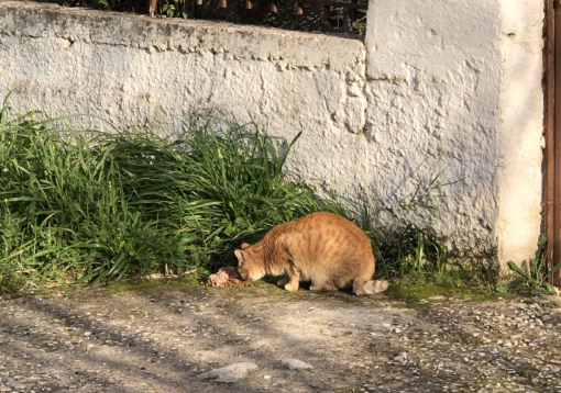 Den vier Geschwistern geht es zum Glück gut. Sirene habe ich in Dimitras Garten gesehen und füttere sie neben dem Gartentor.